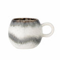 The Paula Cup by Bloomingville is glazed in gray and white hues with wavy stripes, giving the design a lively expression. The handle provides a comfortable grip, making the cup both practical and stylish. The nature of the glaze can lead to variations in color, making each cup unique.