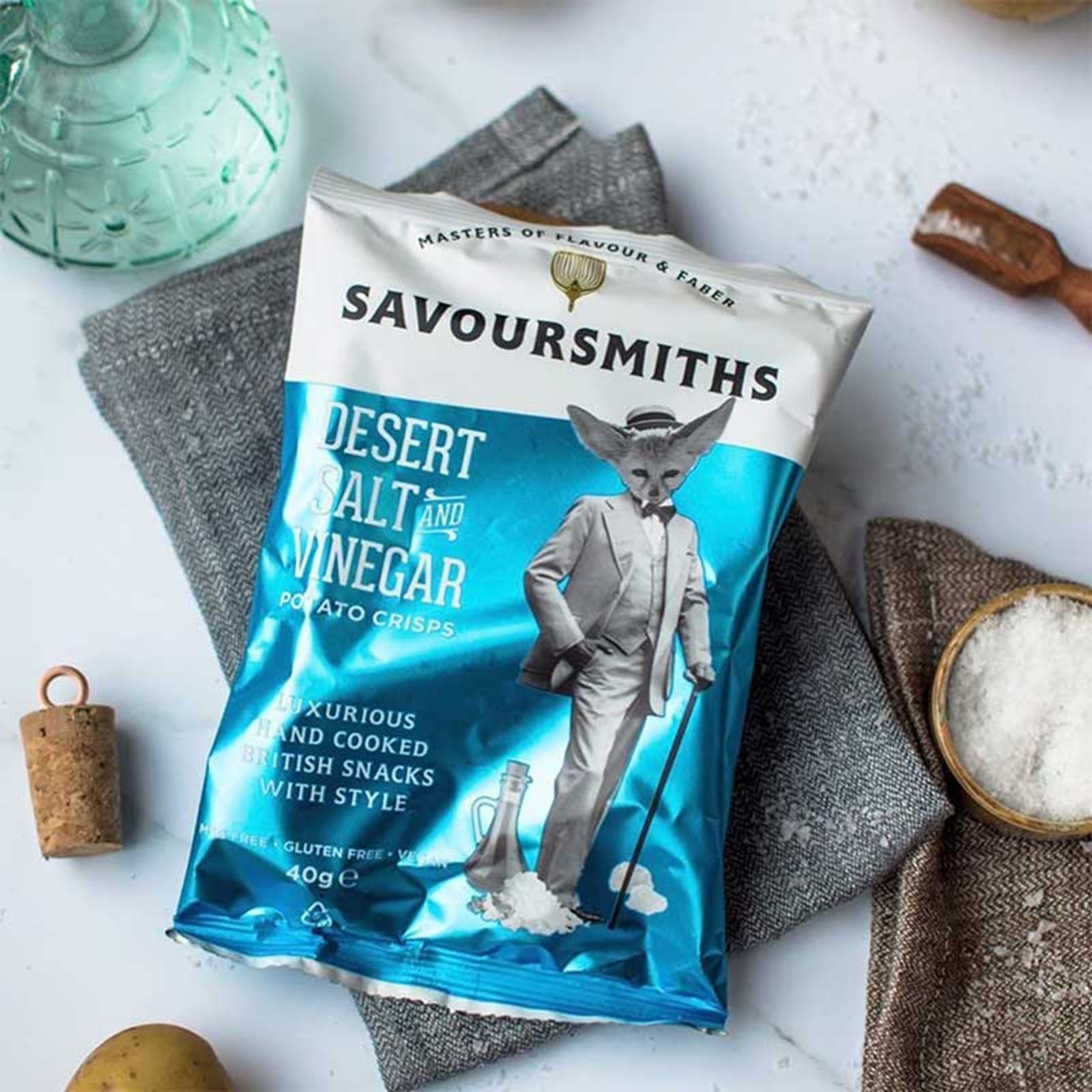 Savoursmiths tar det traditionella salt och vinägerchipset till nya höjder med sin unika twist. Endast de bästa ingredienserna är gott nog. Salt och vinägerchipsen är tillverkade med omsorgsfullt utvalt ökensalt, vilket ger en distinkt och naturlig sälta till varje tugga. För att balansera den salta smaken, blandar de även in en touch av syrlig vinäger, vilket ger en spännande kontrast och en komplett smakupplevelse.