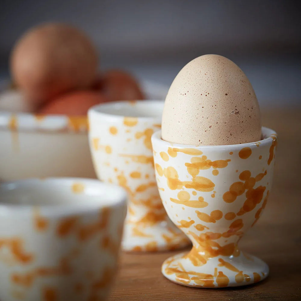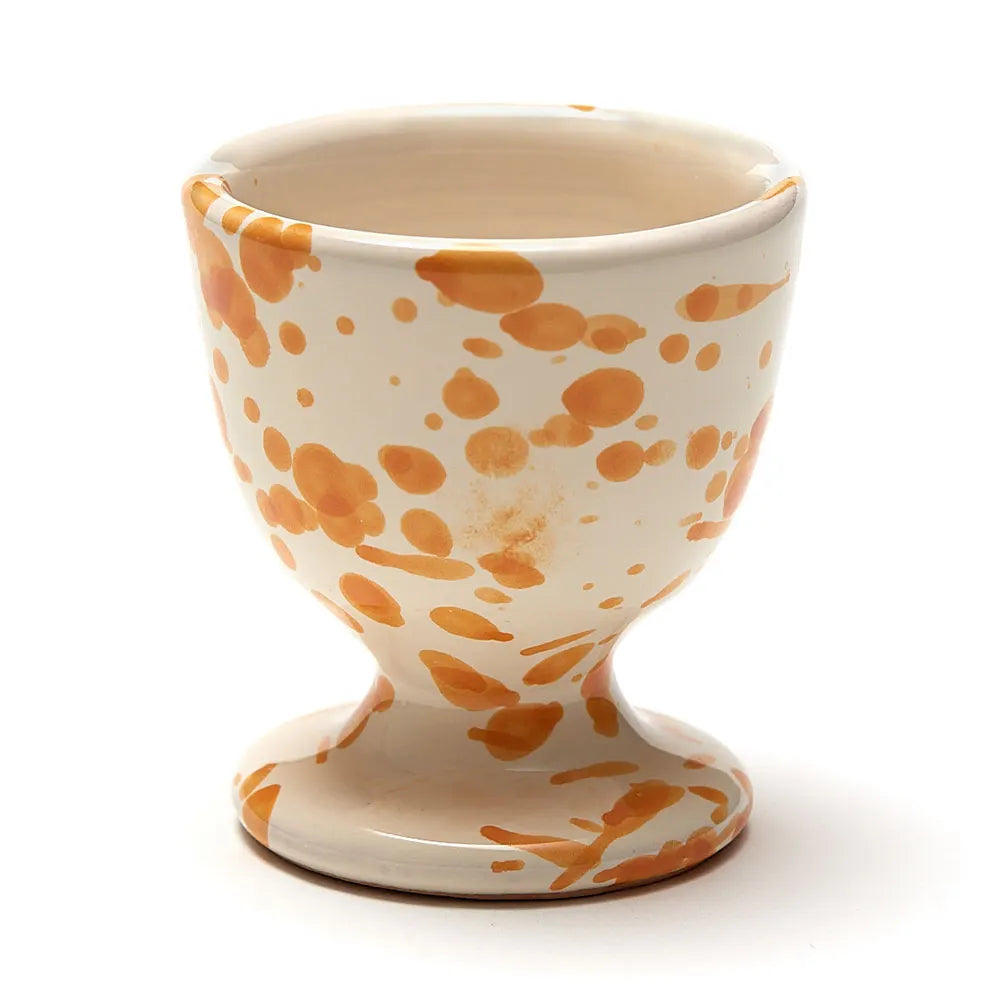 Äggkopp med färgstänk ur serien Spruzzi från Benegiamo. En fin äggkopp i lergods som är både handgjord och handmålad. Såsom allt hantverk är varje äggkopp unik. Färgskillnader i glasyren kan förekomma och dekorationsmåleriet kan innehålla vissa ojämnheter såsom nyansskillnader och blåsor/prickar. • Mått: Diameter 5 cm Höjd 6 cm Benegiamo är ett gammalt, stolt familjeföretag som startade 1650 och nu är det 10:e generationen som driver firman. Företaget har drygt 20 anställda förutom dom 3 bröderna Benegiamo. Benegiamos produkter är handgjorda och handmålade av erfarna keramiker i Italien. Alla Benegiamos produkter uppfyller med god marginal de höga internationella kraven för bly och kadmiuminnehåll.