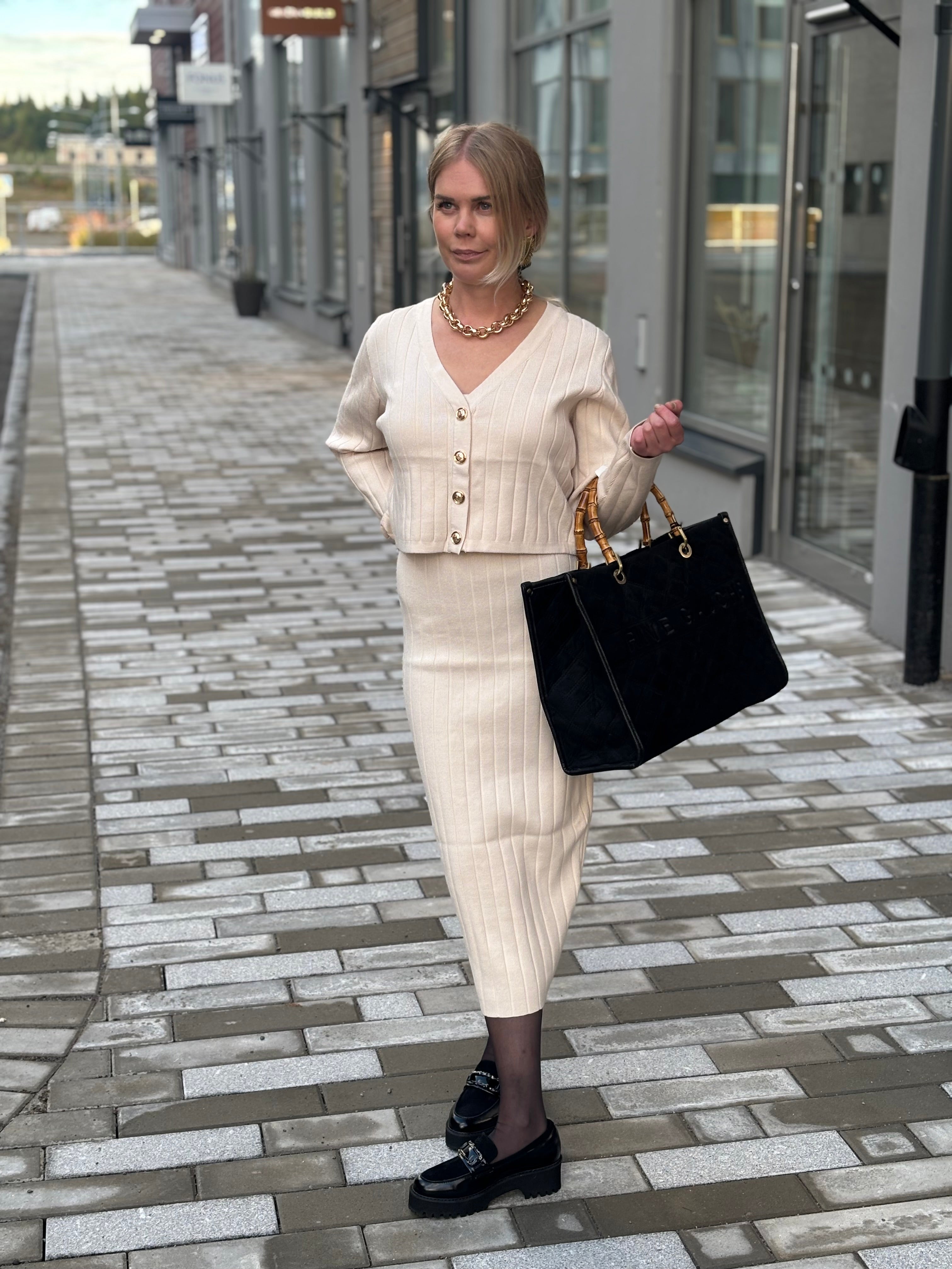 Ett underbart mjukt stretchigt set i Viscosemix. Klänning & kofta ingår i detta. Onezise på denna och passar Storlek 34-40. Koftan har tryckknappar i guld och passar lika bra till ett par jeans & var och för sig.