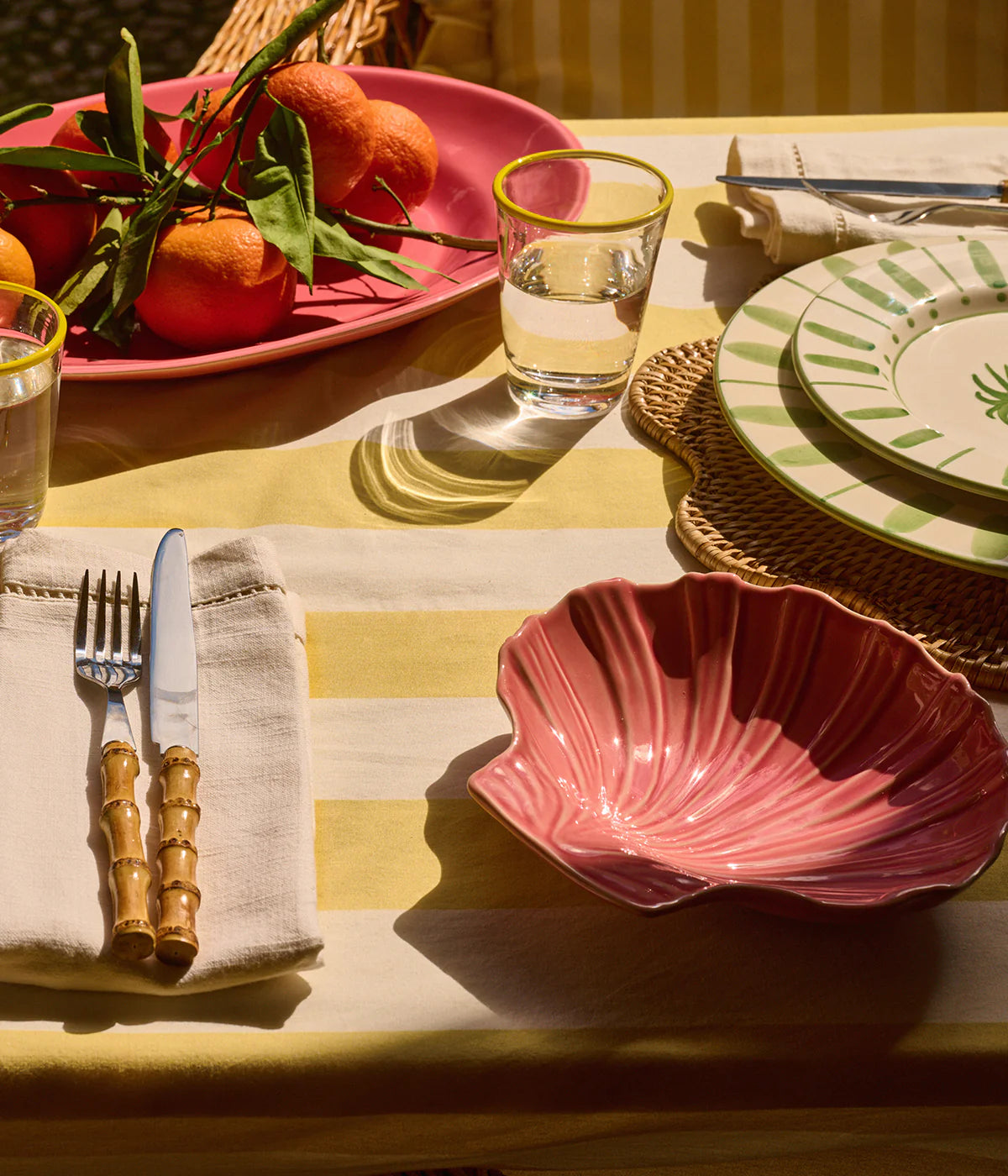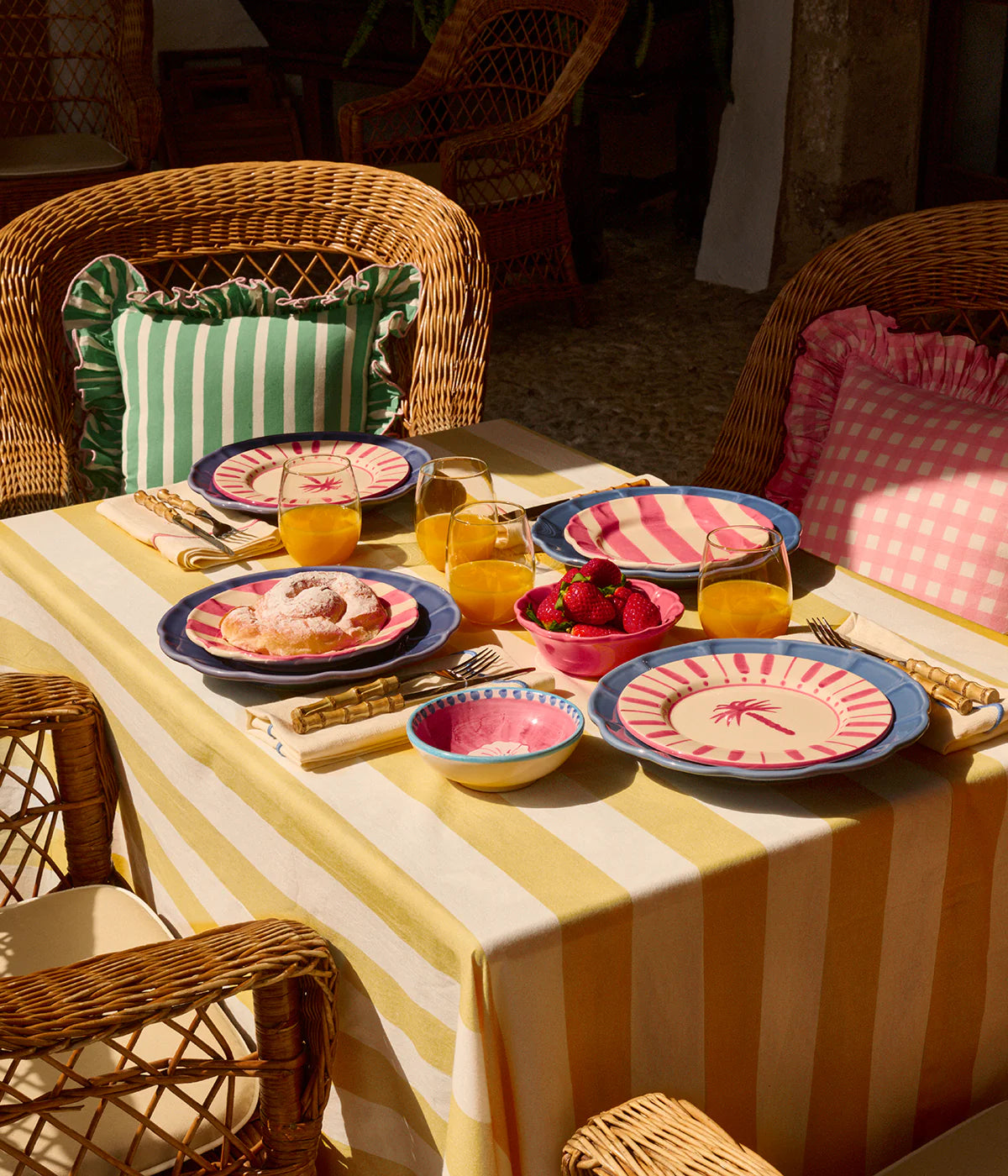 Ge din matplats en lekfull atmosfär i sann POPPY-anda. Våra bordsdukar finns i olika storlekar och färger, anpassade för att passa alla tillfällen. Duken är handvävd av infärgad bomull och tillverkad genom traditionellt hantverk i Jaipur, Indien. Stripe kommer i tre glada färger som får oss att längta efter en solig brunch vid Medelhavet. Kombinera med våra handmålade tallrikar Stripe för att få en fulländad riviera-upplevelse!