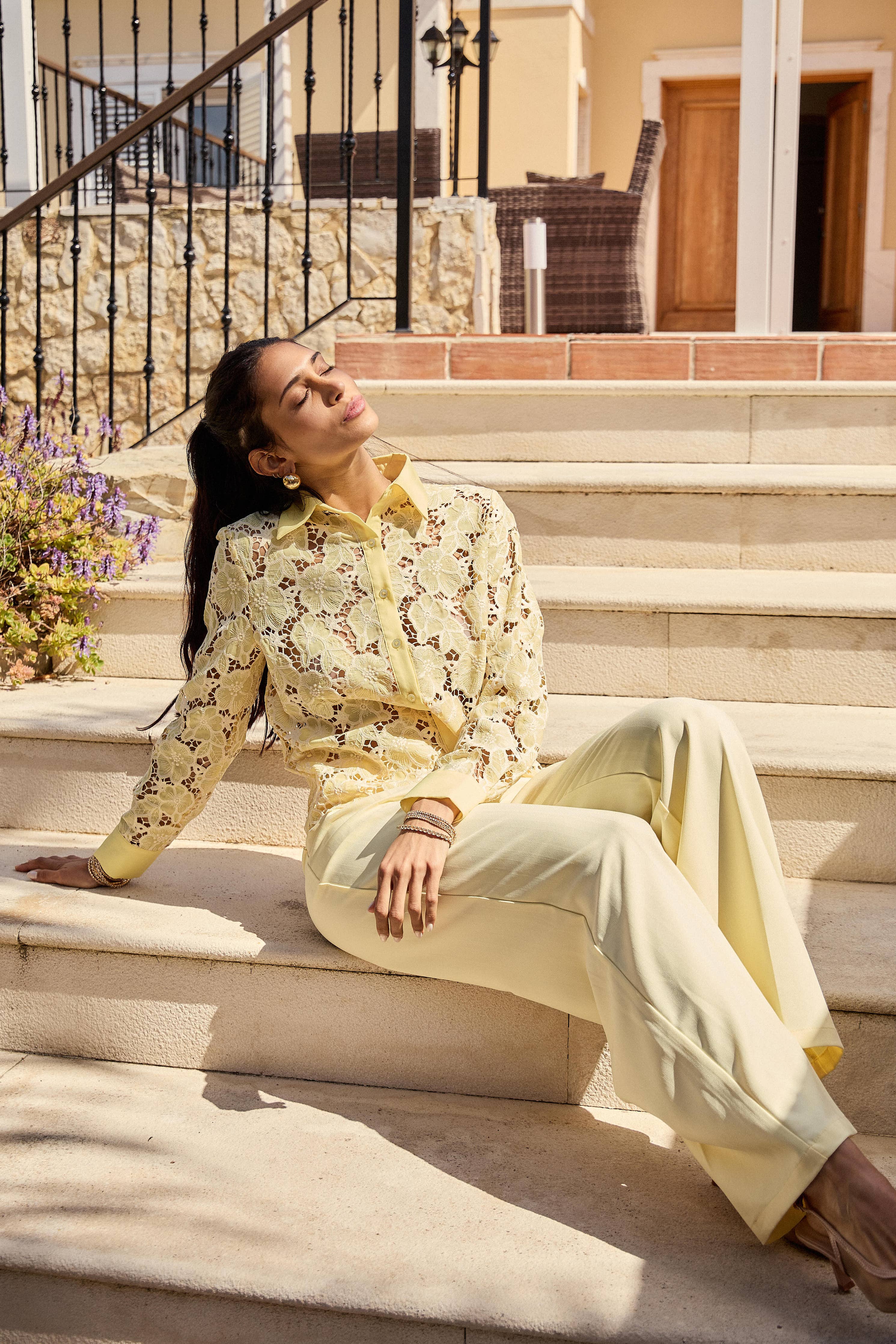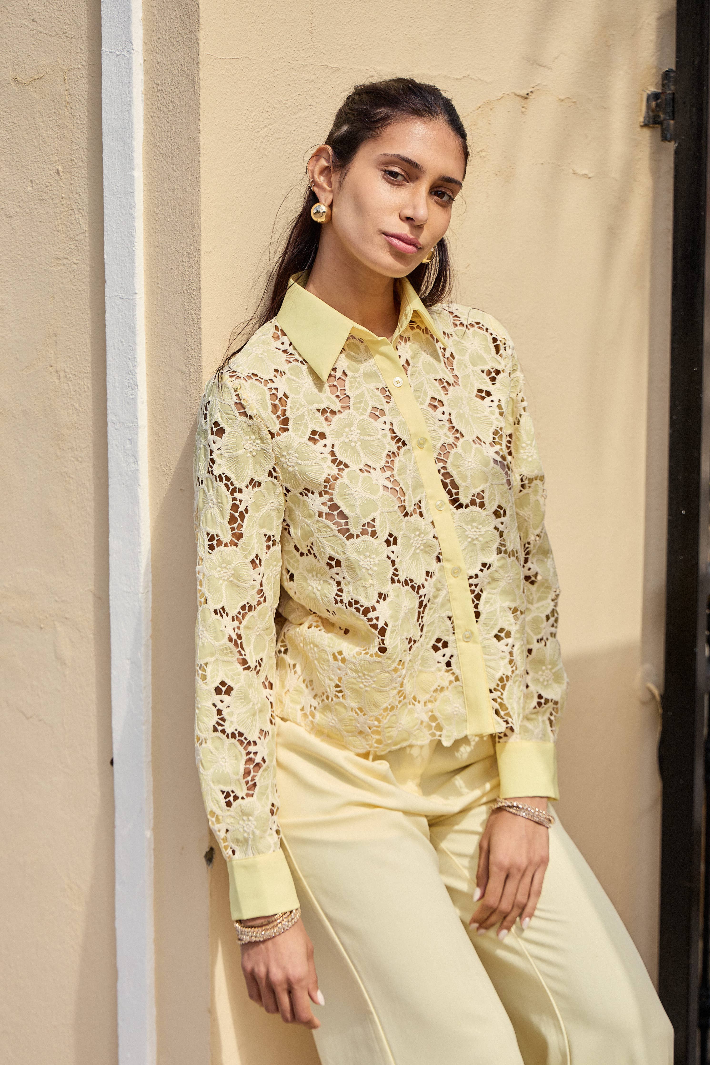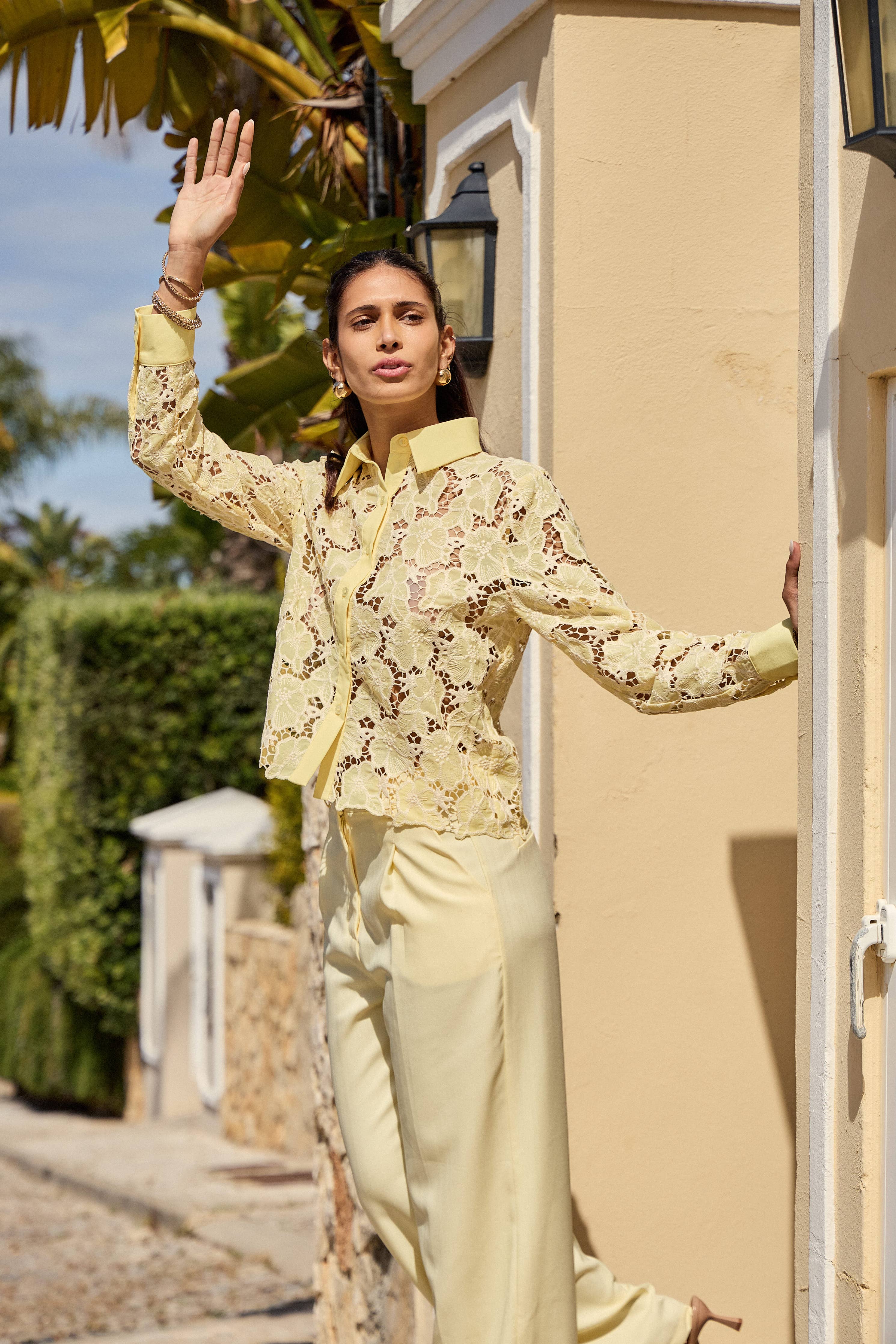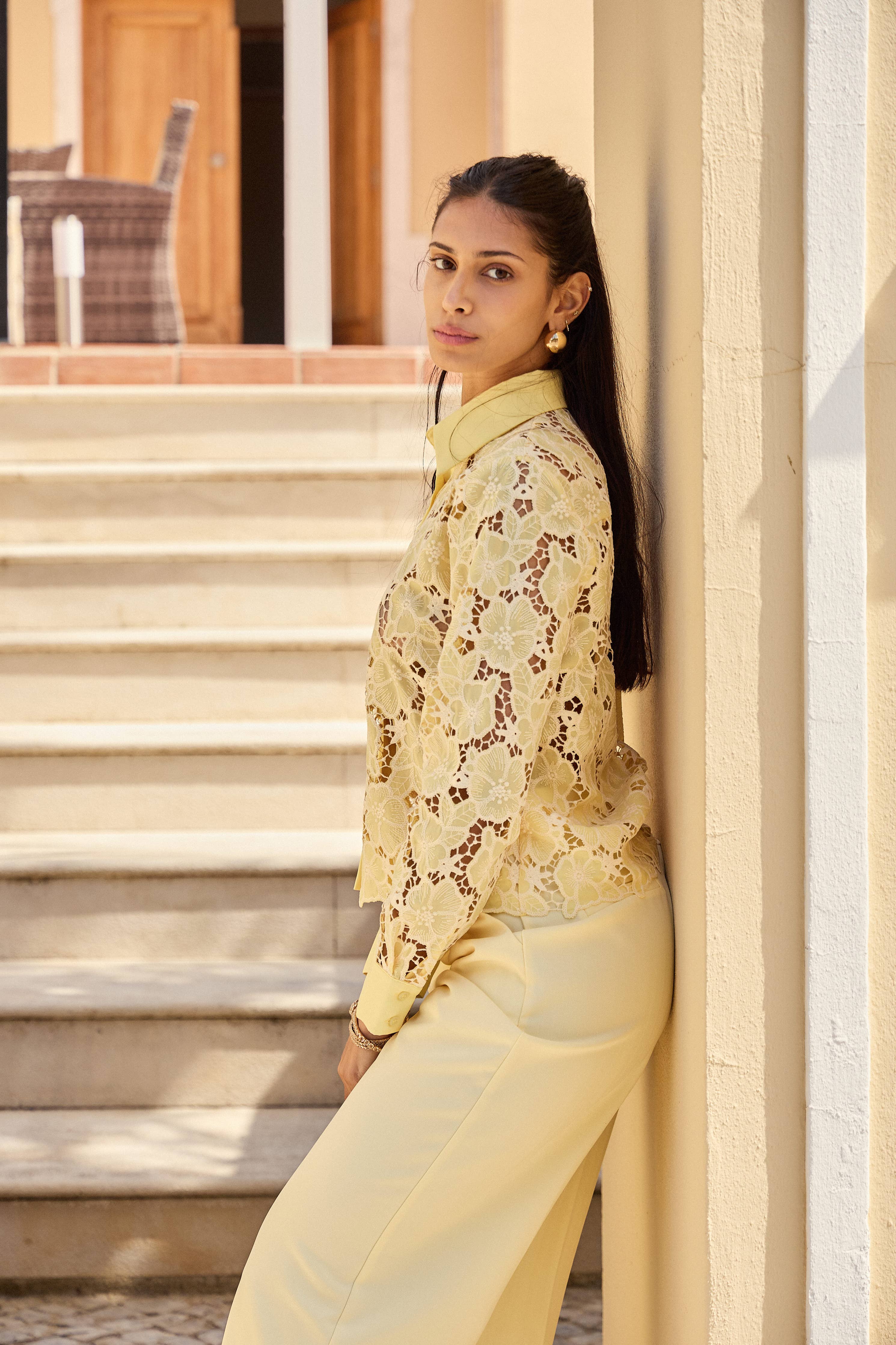 - Spetsblus - Broderade blommönster - Långärmad - Utan foder modellen på bild är 1,75 m lång och bär storlek S