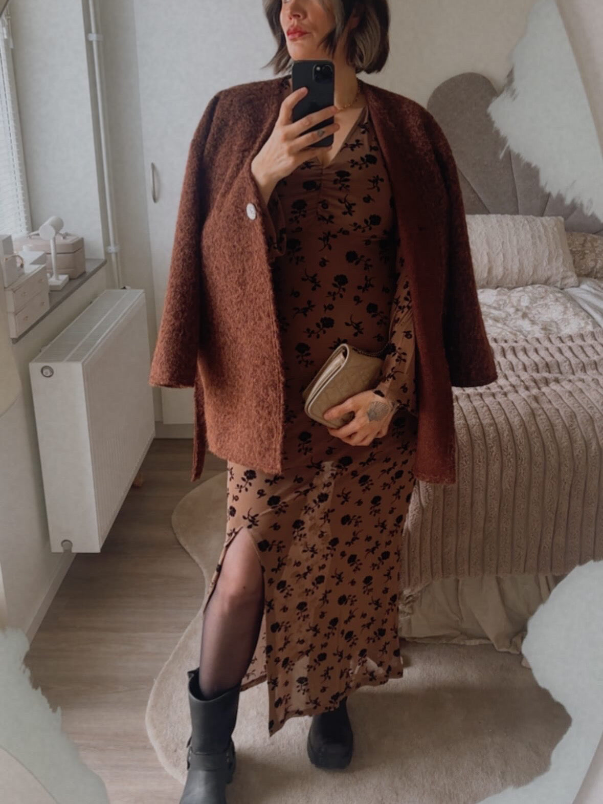 Härligt gosig kofta/jacka i den finaste höstbruna färgen. 36-46 fickor, bälte, dekorativ knapp. Denna kofta sticks inte.
