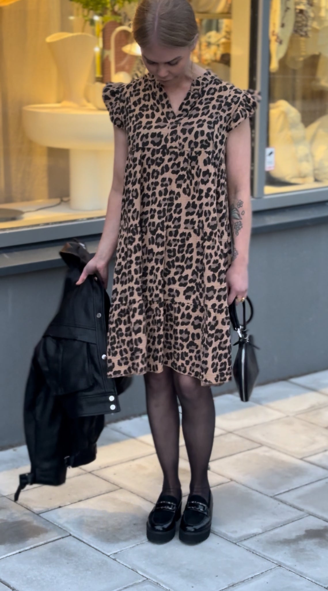 Kort klänning i tryckt bomullsgas. Klänningen finns i 3 storlekar: S, M, L. Sammansättning: 100% bomull