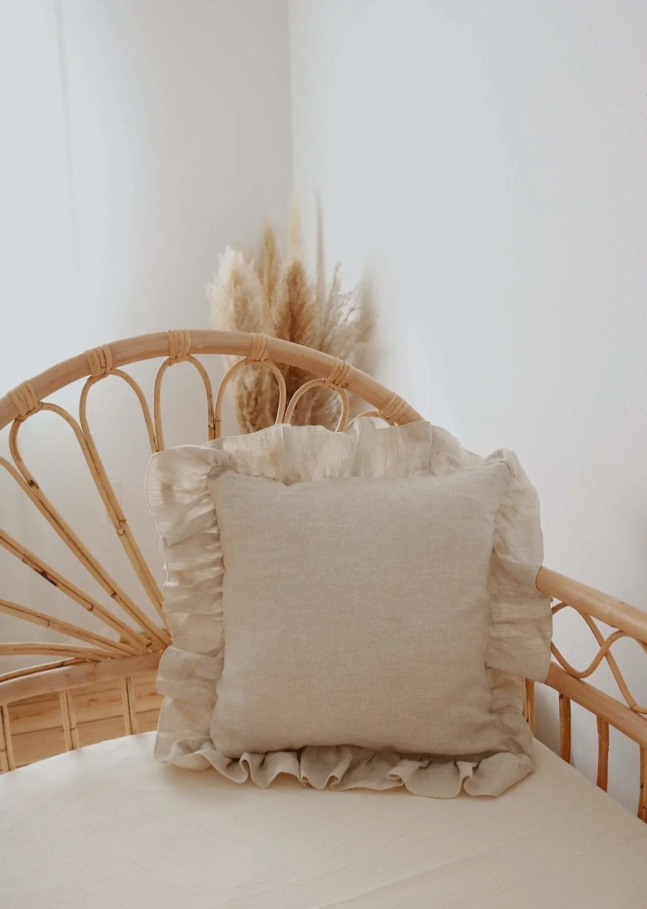 Kuddfodral i 100% linne från Moi Mili med volanger. Mått för innerkudde 40*40. Mått ibli volang 55*55