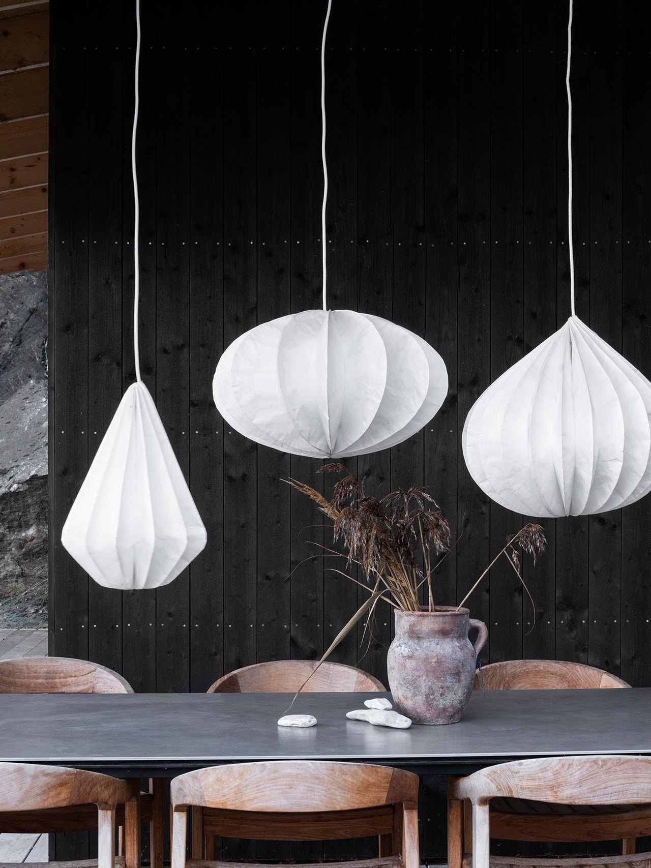 Pappersmaterialet kallas för Tyvec, ett lätt och hållbart material med andningsförmåga, vilket gör det väldigt tåligt mot vätska och slitage. Pinecone taklampa är lika vacker inomhus som utomhus. Vill du hänga taklampan utomhus, häng den i ett skyddat läge tillsammans vår svarta utomhuskabel, som är godkänd för utomhusbruk.