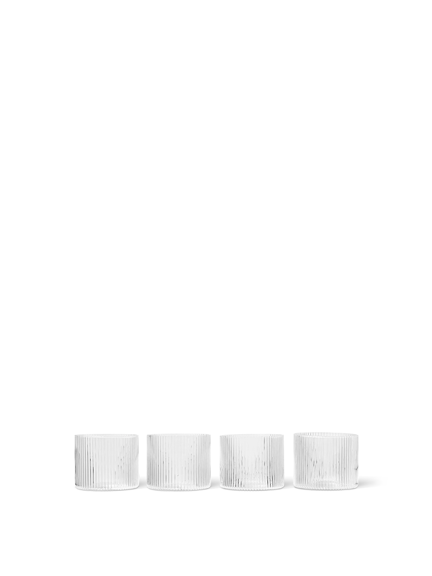 Ripple glas lågt 4-pack från Ferm Living är munblåsta glas formgivna i en låg cylinderformad design. Glasens minimalistiska uttryck kompletteras av de smala ränderna och ger dig vackra dricksglas perfekta för såväl drinkar som vatten och andra måltidsdrycker. De låga Ripple-glasen passar utmärkt tillsammans med de flesta serviser och kan med fördel kombineras med andra delar ur Ripple-serien för en enhetlig känsla.