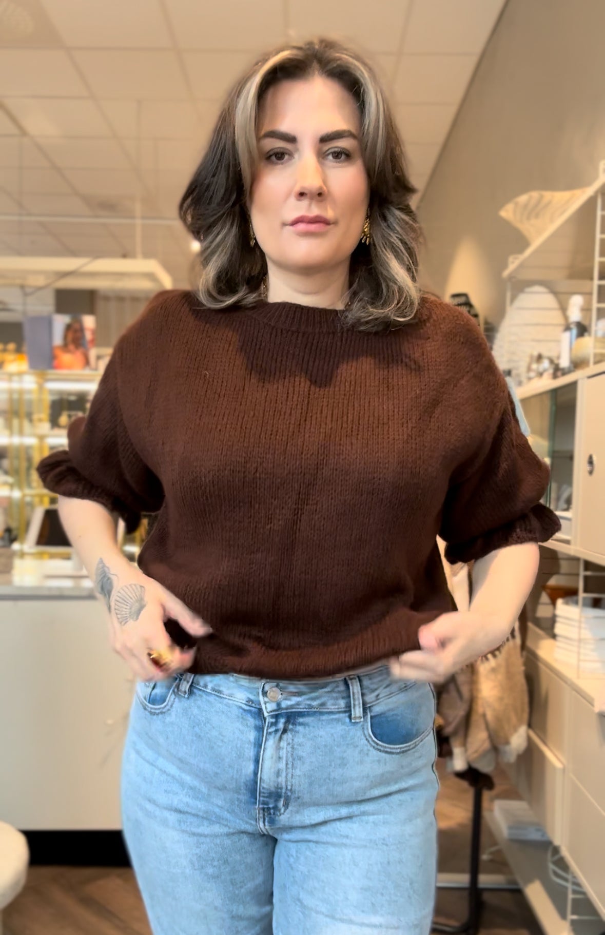 ROMA Tröja med volangärmar Mörkbrun 36-44