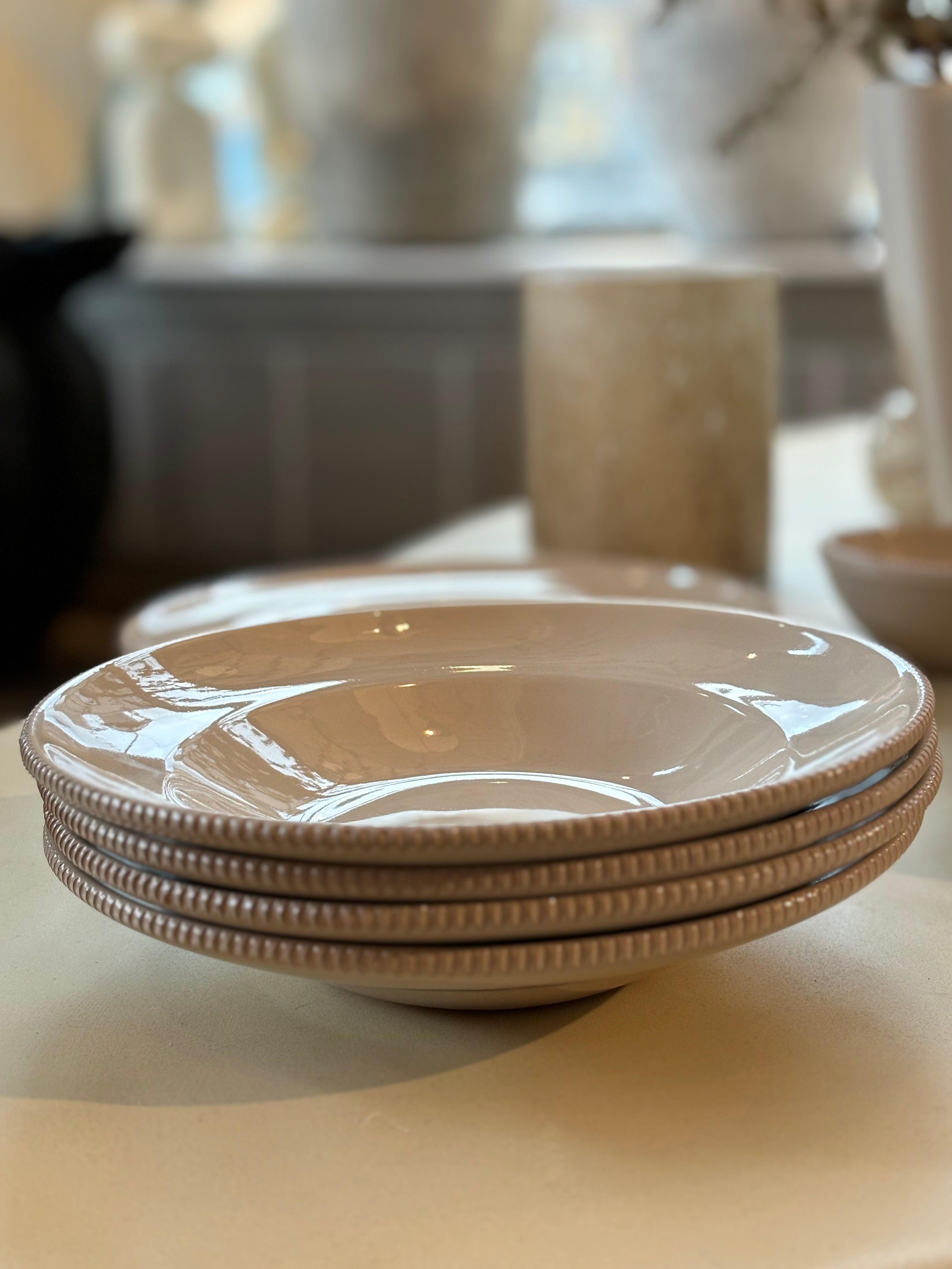 Salento är ett handgjort glaserat porslin från Benegiamo, Italien, en otroligt fin kulör, creme beige. Porslinet tål diskmaskin och microvågsugn.