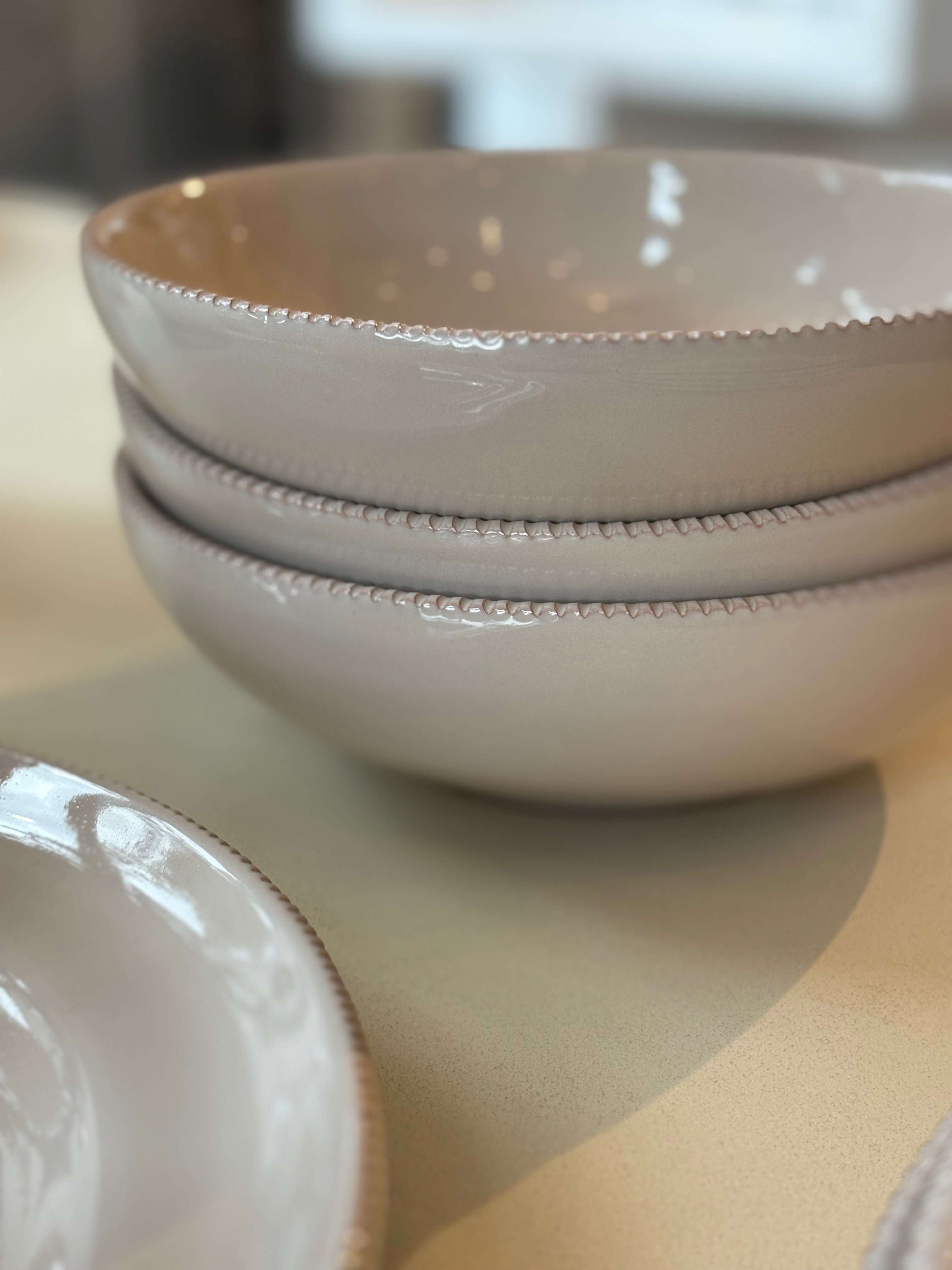 Salento är ett handgjort glaserat porslin från Benegiamo, Italien, en otroligt fin kulör, creme beige. Porslinet tål diskmaskin och microvågsugn.