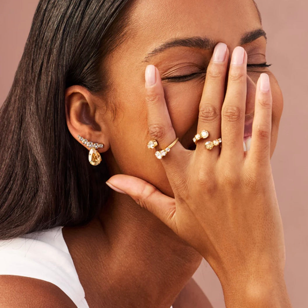Saphina Earrings är skapade för att dra blickarna till sig. Med en gnistrande kombination av klassisk elegans och modern design adderar de en sofistikerad touch till varje look. Perfekta för både festliga tillfällen och när du vill förhöja vardagen med extra lyster.