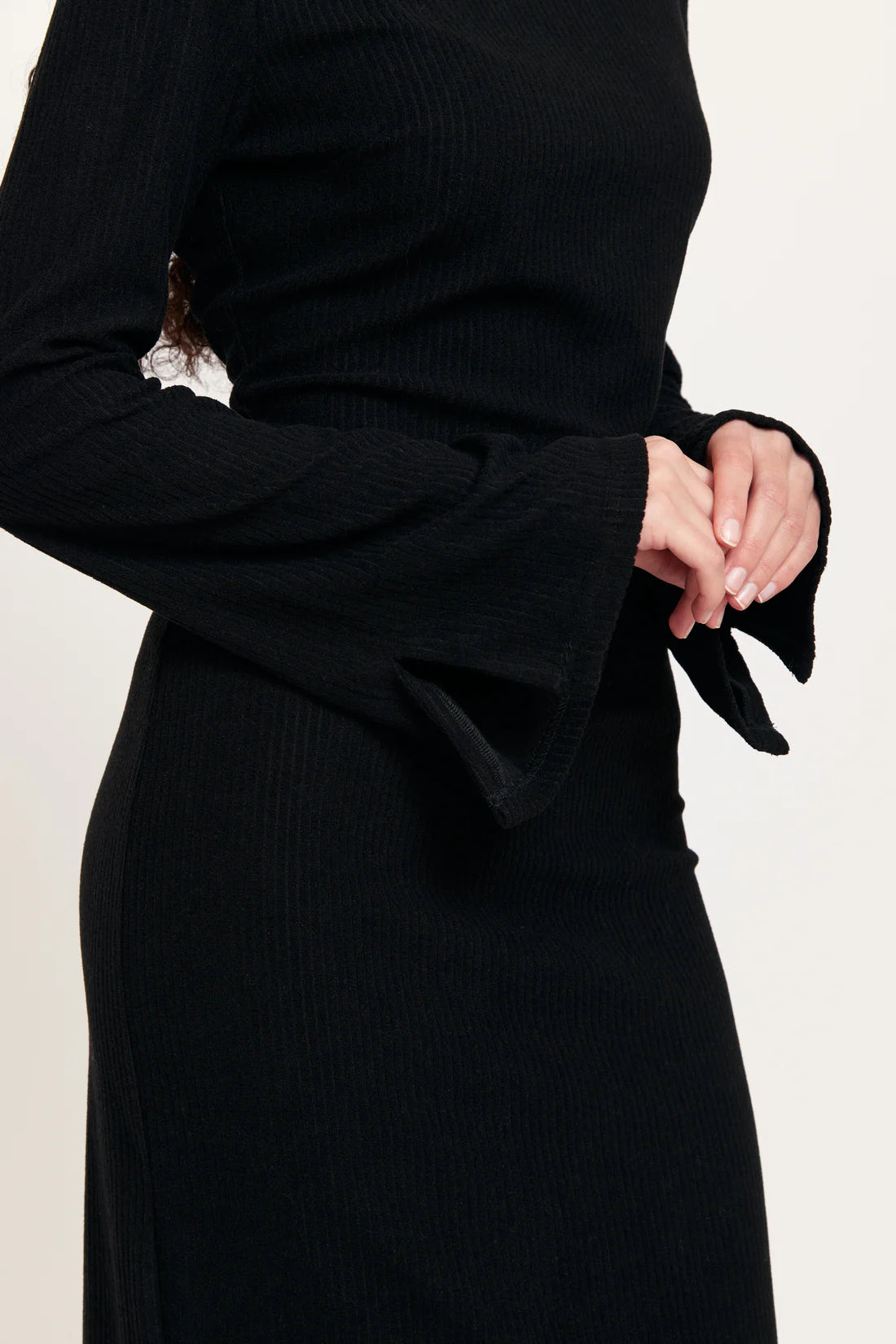 This is an elegant dress in soft stretchy - comfy material, with a velvet feeling. This dress has shoulderpads to mark the sholders, long sleeves. This dress will make you both look and feel amazing. The model is 175 cm tall and wears size S.